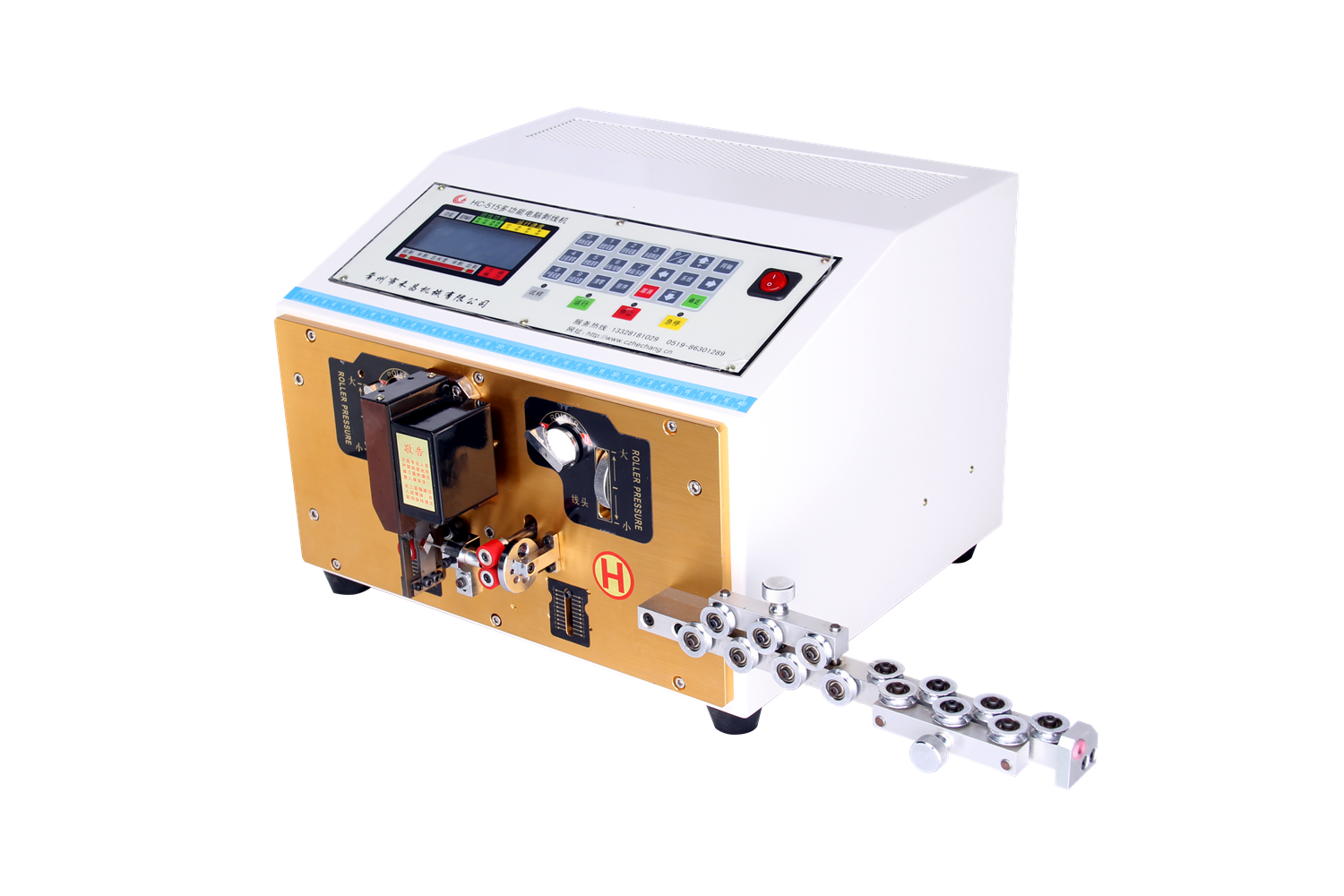 本機(jī)電腦控制,按鍵操作,高速剝線在裁剝范圍內(nèi)可任意設(shè)定線長,線頭,線尾及剝線長度,有扎量、延時(shí)等功能,性能穩(wěn)定操作方便,低噪音,裁線精確無損傷,是加工細(xì)線、短線的專用設(shè)備,可加工AWG36線材,是目前國內(nèi)加工較細(xì)導(dǎo)線的電腦剝線機(jī),對(duì)兩輪的壓力間隙采用細(xì)分微調(diào),可精確到0.05MM,以保證每條線的加工精度,減輕導(dǎo)線外皮壓紋,使加工后的線束更加合適