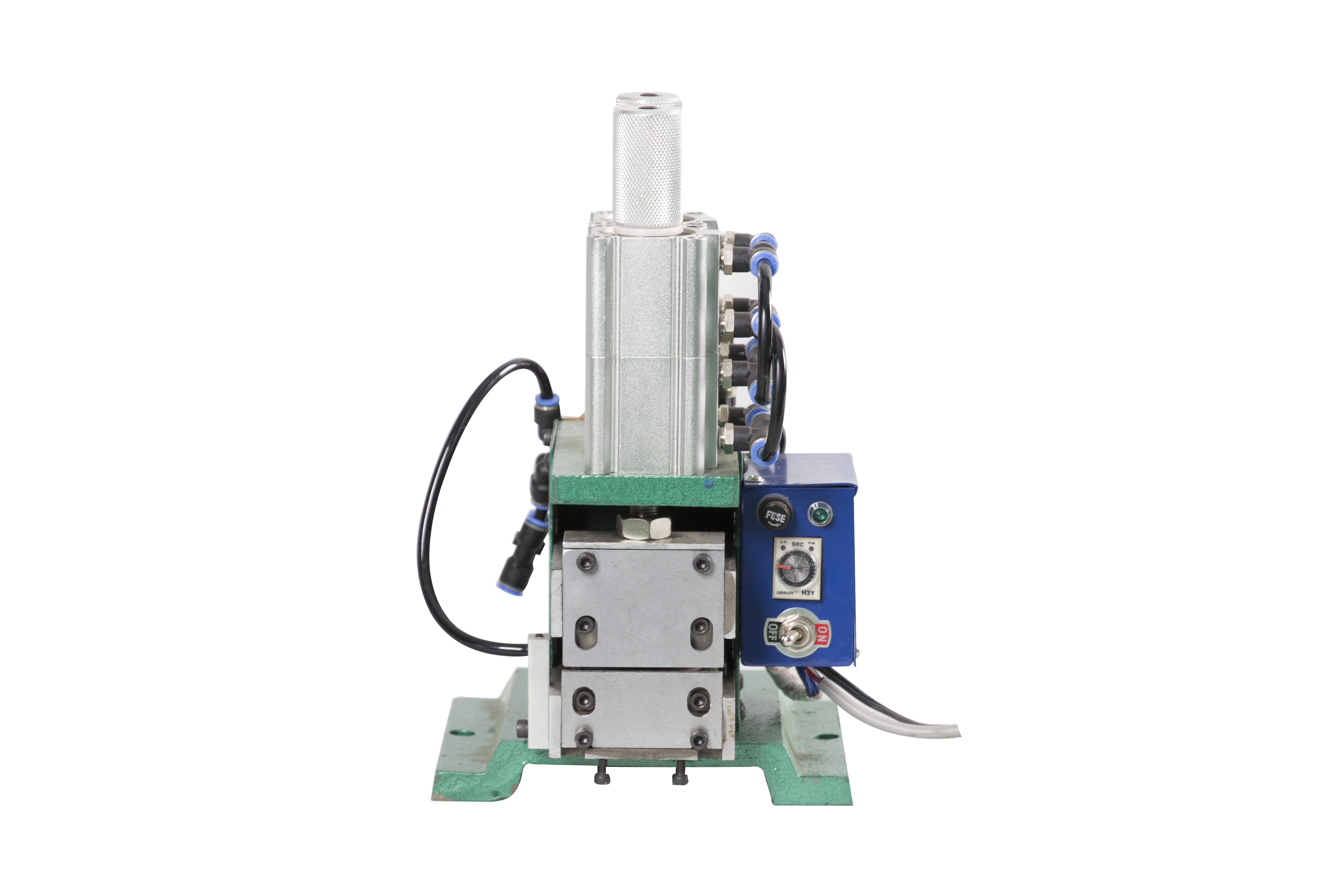 本機型主要針對目前線材行業(yè)中一些特殊線材之剝皮用,如電腦芯線、隔離線、電話線、排線等細線,適用線徑AWG#18-32,采用雙層倍力氣缸,力量大,可加工各類排線。